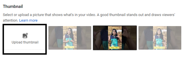 请记住,YouTube 不允许您在 YouTube 平台上创建缩略图。但是,帐户验证后,您可以上传自己的缩略图,或者可以选择自动生成的缩略图。