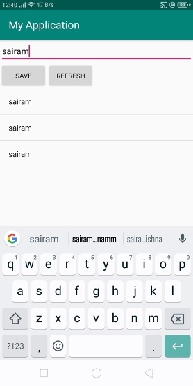 </LinearLayout>在上面的代码中,我们使用了名称和记录编号作为EditText,当用户点击保存按钮时,它会将数据存储到ArrayList中。点击刷新按钮以获取ListView的更改。