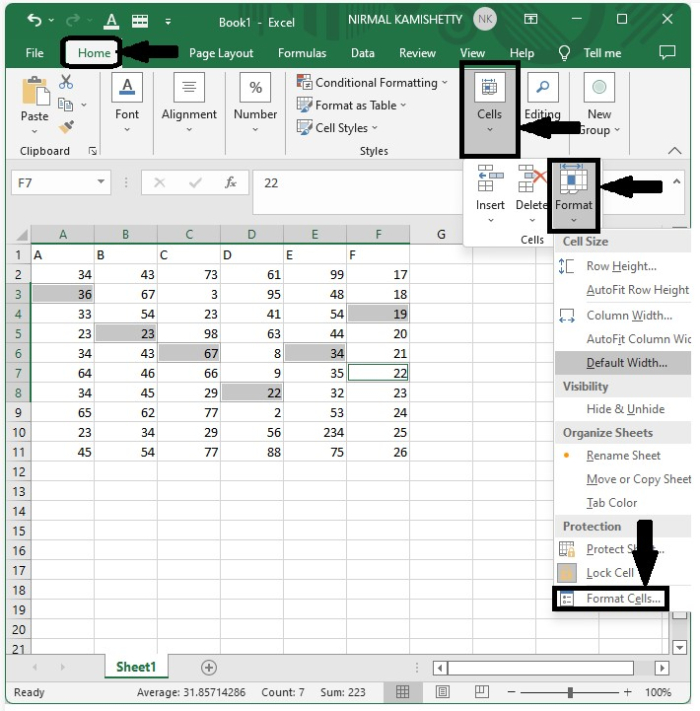 要添加删除线,请选择单元格→选择“开始”选项卡→“单元格”→选择“格式”,如下面的屏幕截图所示。