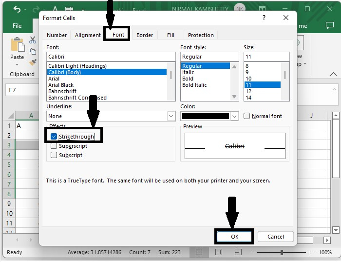 单击“确定”后,我们可以看到删除线已成功添加到所选单元格中,如下面的图像所示,这是我们的最终输出 -