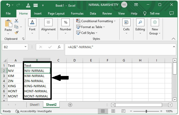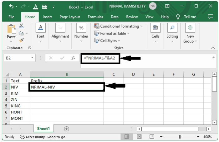 在我们的例子中,公式将是 ="NIRMAL-"&A2
