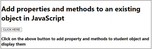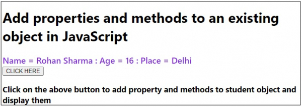 <h3>Click on the above button to add property and methods to student object and display