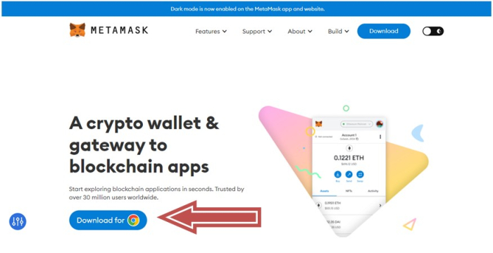 **步骤1** - 前往https://metamask.io/或在谷歌搜索MetaMask,点击MetaMask官方网站,然后点击Chrome下载。