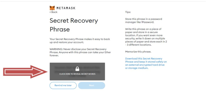 **步骤6** - 现在,您的桌面上会显示一个恢复短语,如果您忘记了凭据,它可以帮助您恢复账户。