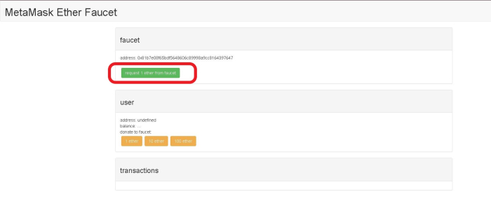 **步骤9** - 点击绿色选项卡,请求网络中的**1个测试以太币**。