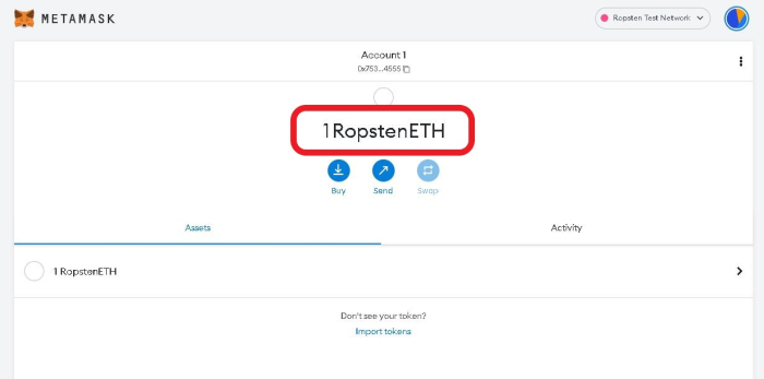 这些测试代币为您提供了在开发DApp或任何其他与区块链相关的项目时进行真实世界交易体验的环境。您可以添加更多代币来执行您的任务,并使用测试网络进行本地测试。在本文中,我们特别使用了**Ropsten网络**,它使用**RopstenETH**测试代币,正如您在钱包中看到的。