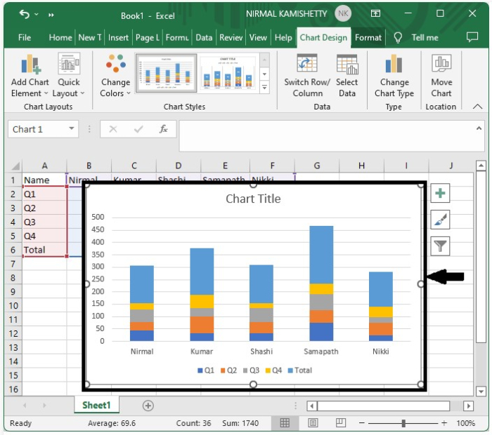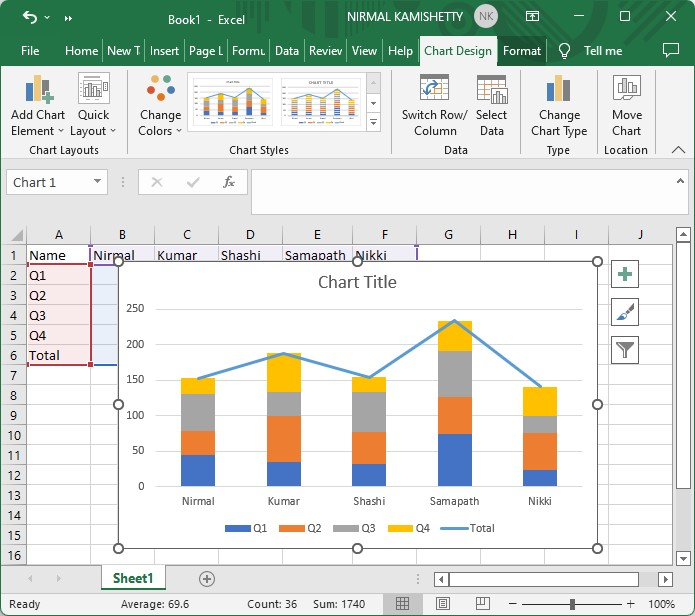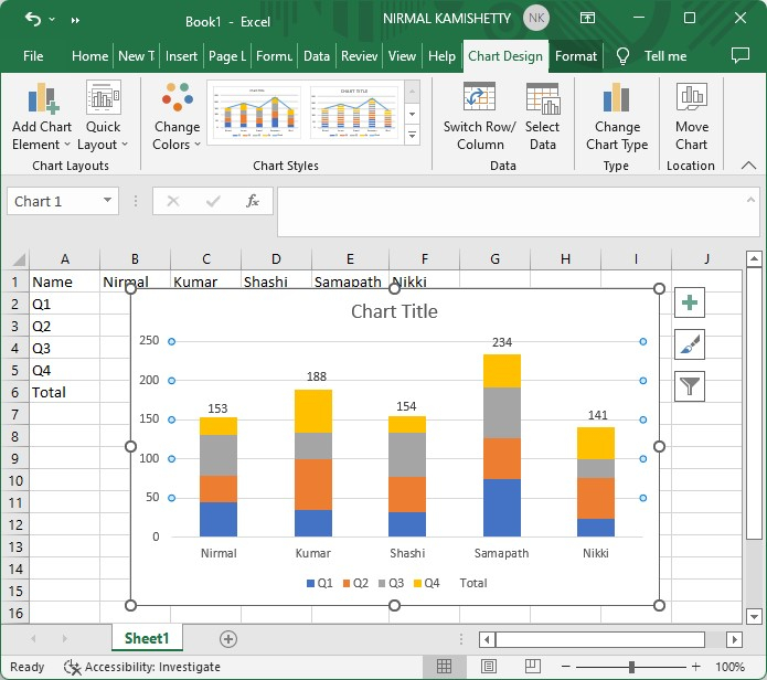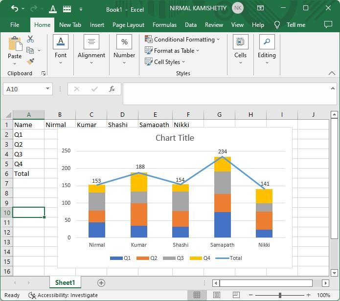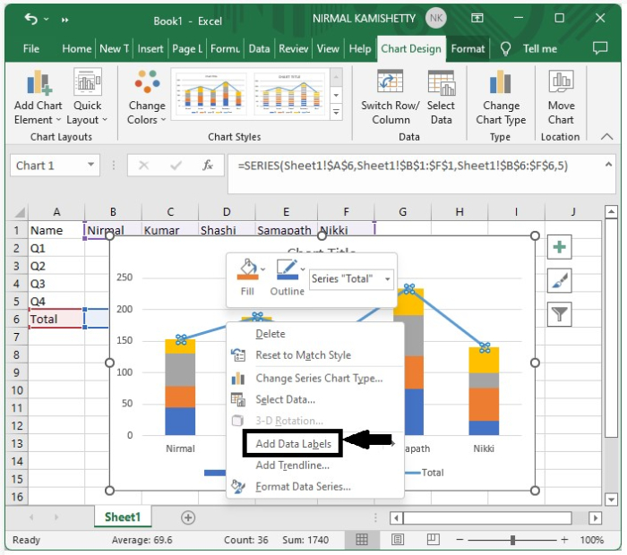 这里我们将首先创建堆叠柱状图,然后更改其格式,最后从右键单击菜单中添加数据标签。让我们来看一下在Excel中向堆叠柱状图添加总计标签的简单步骤。