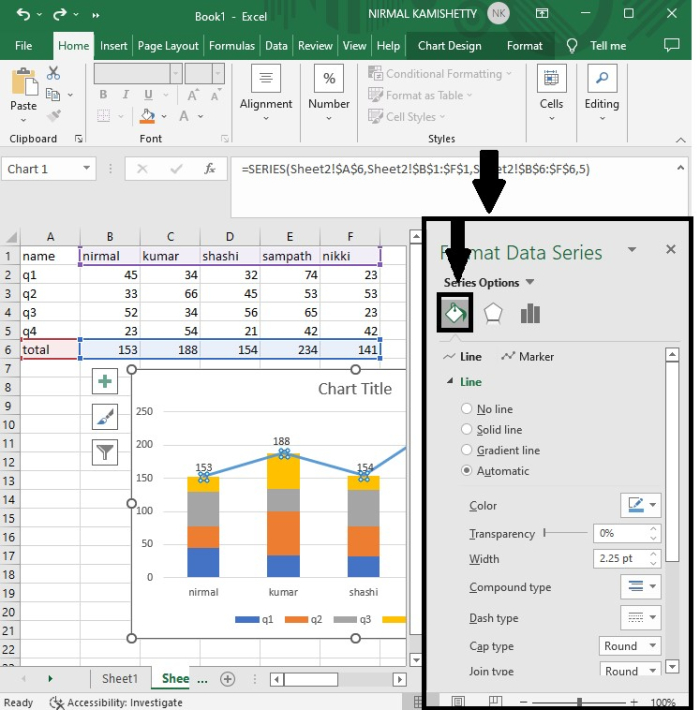 从“折线”菜单中选择“无折线”,我们的折线图将被成功删除,并将生成我们的最终输出,如下图所示。