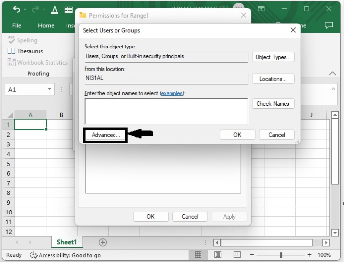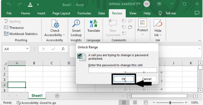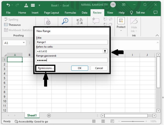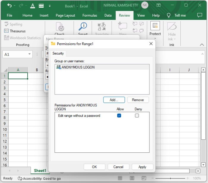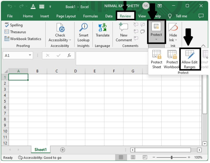 让我们考虑一个新的 Excel 工作表,在允许特定用户编辑 Excel 中的单元格区域之前,我们必须首先确保工作表未受保护。