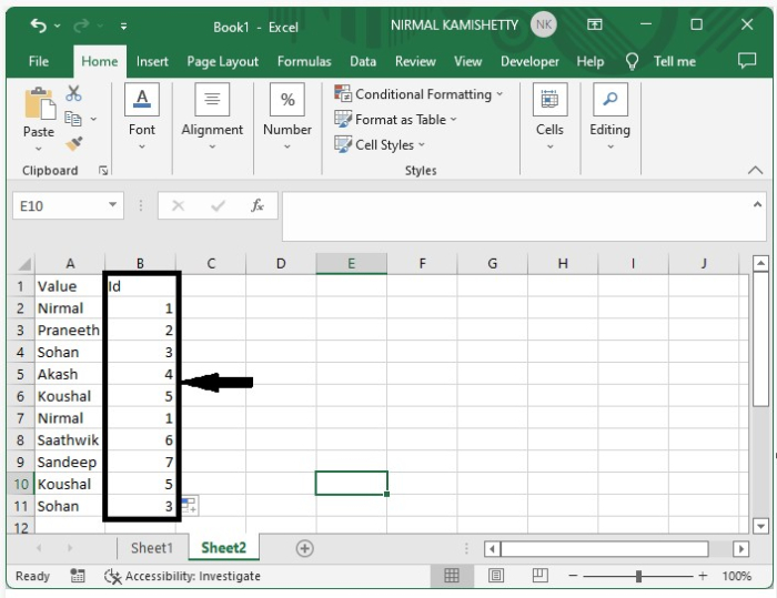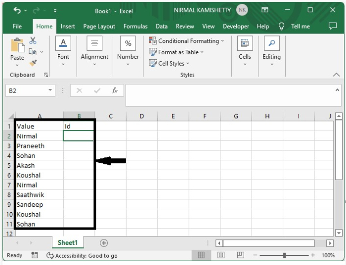在这里,我们将首先使用公式来获得最终结果。让我们来看一个在Excel中为唯一值分配序列号的简单过程。