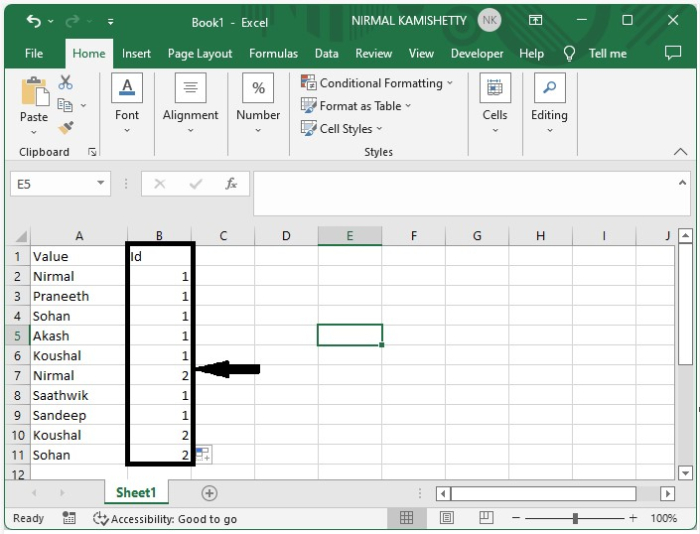 我们可以成功地为第一个值分配数字。然后从第一个结果向下拖动,直到打印所有结果,我们的最终输出将类似于下图。