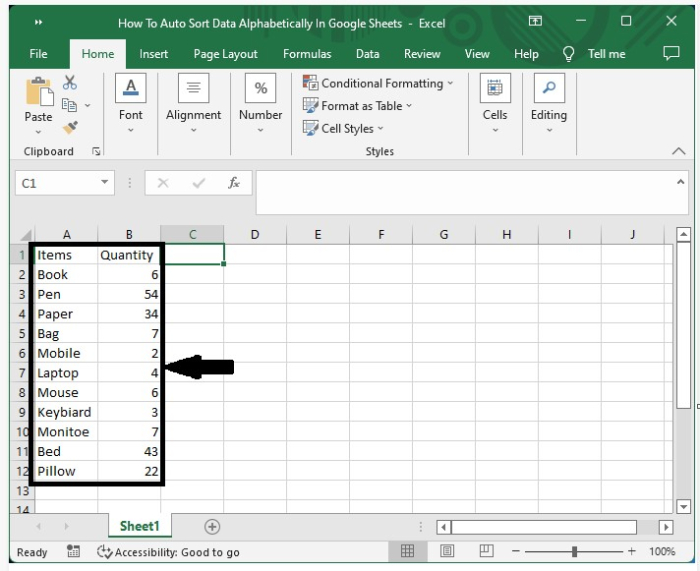 我们可以手动对 Google Sheets 中的文本列表进行排序,但这将是一个非常耗时的过程。相反,我们可以在 Excel 中使用一个简单的过程来自动执行此操作。我们将使用 Excel 功能区中数据菜单上直接提供的按钮。