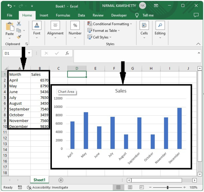 在这里,我们将数据转换为表格来完成我们的任务。让我们来看一个简单的过程,了解如何使用表格在输入新数据后自动更新图表。