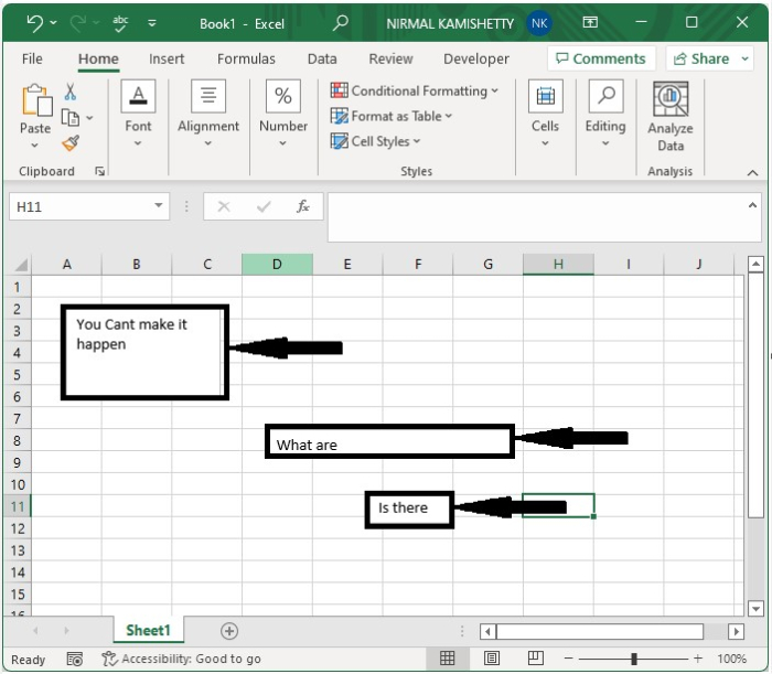 让我们考虑一个包含文本框的 Excel 表格,如下图所示。您可以通过单击“插入”下的文本并绘制框的大小来插入文本框。