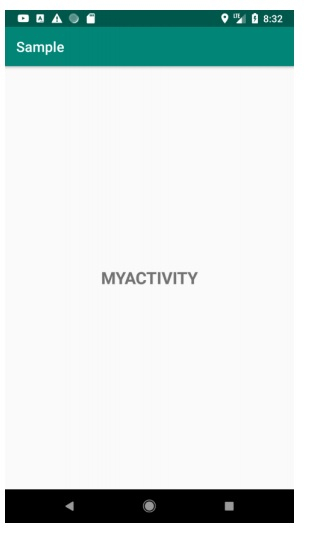 <?xml version="1.0" encoding="utf-8"?> <RelativeLayout xmlns:android="http://schemas.android.com/apk/res/android" xmlns:tools="http://schemas.android.com/tools" android:layout_width="match_parent" android:layout_height="match_parent" tools:context=".MyActivity"> <TextView android:layout_width="match_parent" android:layout_height="wrap_content" android:text="MYACTIVITY" android:layout_centerInParent="true" android:textAlignment="center" android:textSize="24sp" android:textStyle="bold"/> </RelativeLayout>