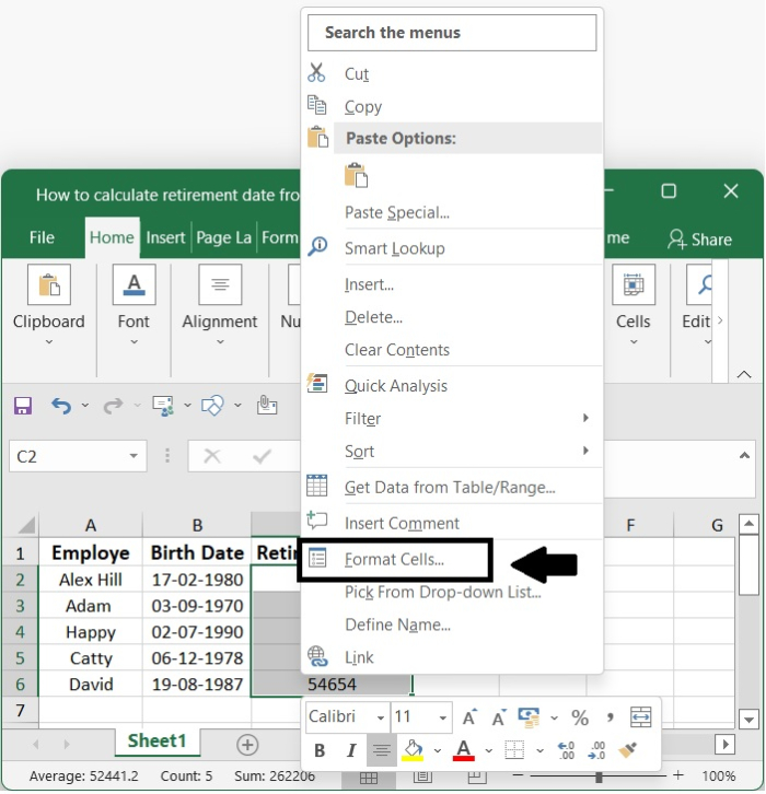 我有一份员工出生日期的列表,如果他们的退休年龄是 62 岁,以下公式可以帮助您计算他们何时可以退休;为此,请按照以下说明操作