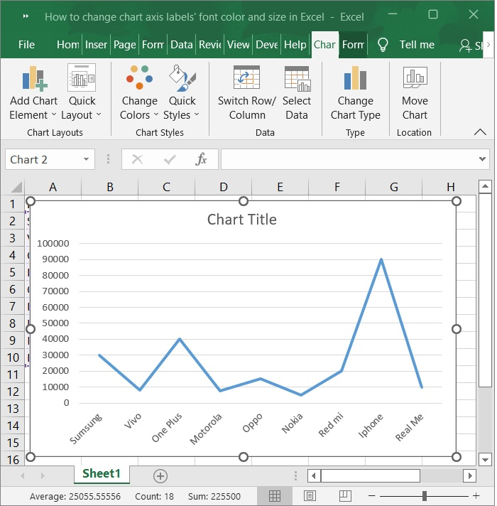 现在,您可以看到指定轴上所有标签的字体颜色和大小都同时进行了修改。如下面的屏幕截图所示。