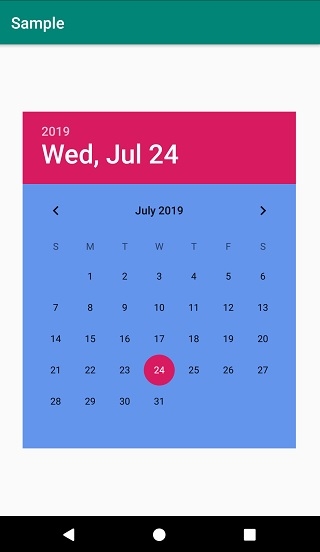 <?xml version="1.0" encoding="utf-8"?> <RelativeLayout xmlns:android="http://schemas.android.com/apk/res/android" android:layout_width="match_parent" android:layout_height="match_parent"> <DatePicker android:id="@+id/datePicker" android:layout_width="wrap_content" android:layout_height="wrap_content" android:background="#6495ED" android:layout_centerInParent="true"/> </RelativeLayout>