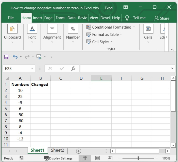 在我们的示例中,我们在 Excel 表格中有一些负数以及一些正数。