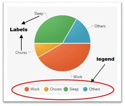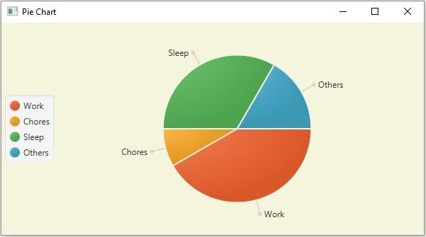 默认情况下,JavaFX 饼图包含扇形的标签和图例 - 一个带有颜色的条形,用于指定每个颜色表示的类别。