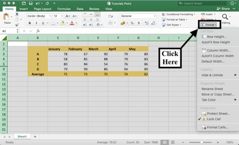步骤 2 - 在“开始”选项卡中,导航到位于工具栏右侧的“格式”。
