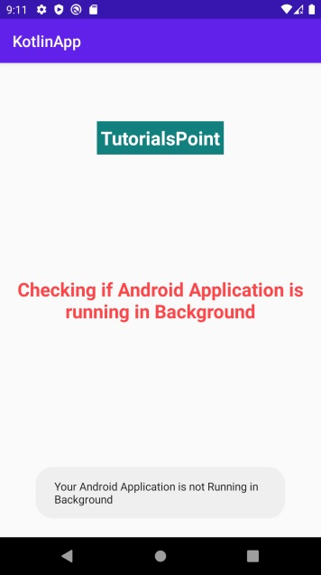 Toast.makeText(applicationContext, "Your Android Application is not Running in Background", Toast.LENGTH_SHORT).show()