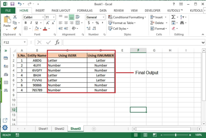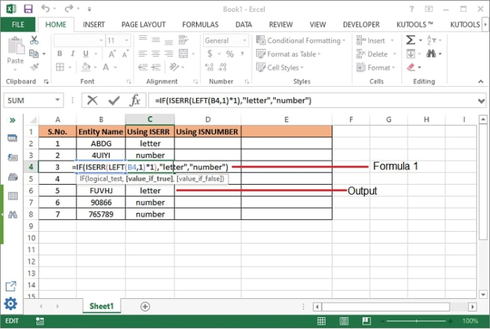 在这个公式中,我们计算单元格最左侧字符的值。如果返回值是数字,则返回TRUE(默认)或根据定义的值(在本例中为“数字”)。