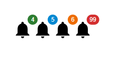 这是一个非常基本的示例,显示了具有不同颜色和值的徽章。在徽章组件中,我们只能有 99 的最大值,如以下输出的最后一个图标所示。