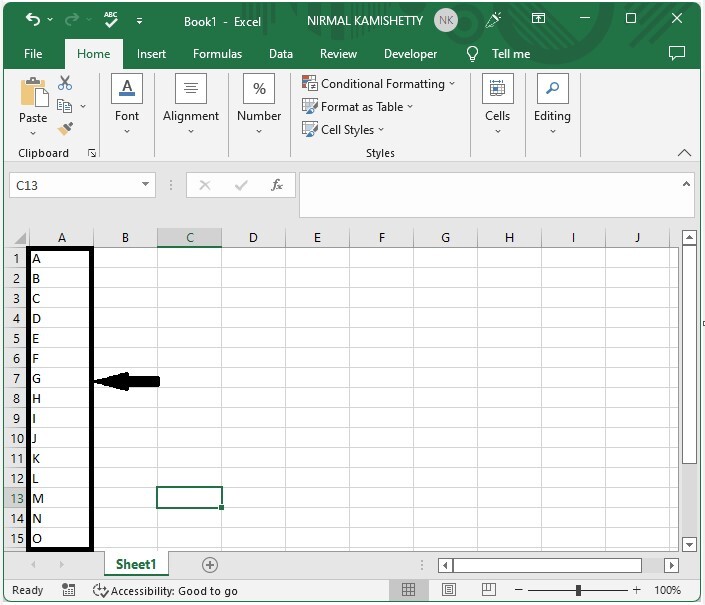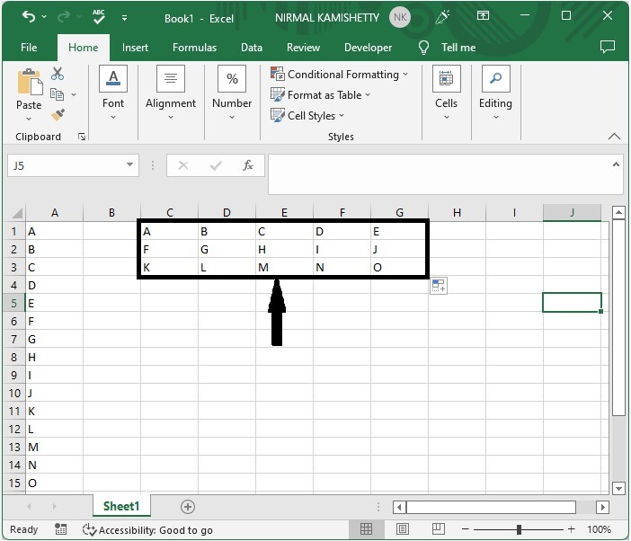 这里我们将使用公式获取单个值,然后使用自动填充柄填充所有值。让我们看看在 Excel 中将单列转换为矩阵的简单过程。