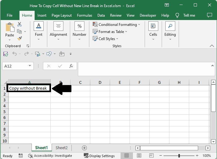 通常,在Excel中,当我们从一个sheet复制数据并尝试将其粘贴到记事本中时,光标会在粘贴数据后移动到下一行。如果您不想将光标移动到下一行,可以将其保持在同一行。我们可以借助VBA应用程序来完成此任务,因为它无法直接在Excel中完成。