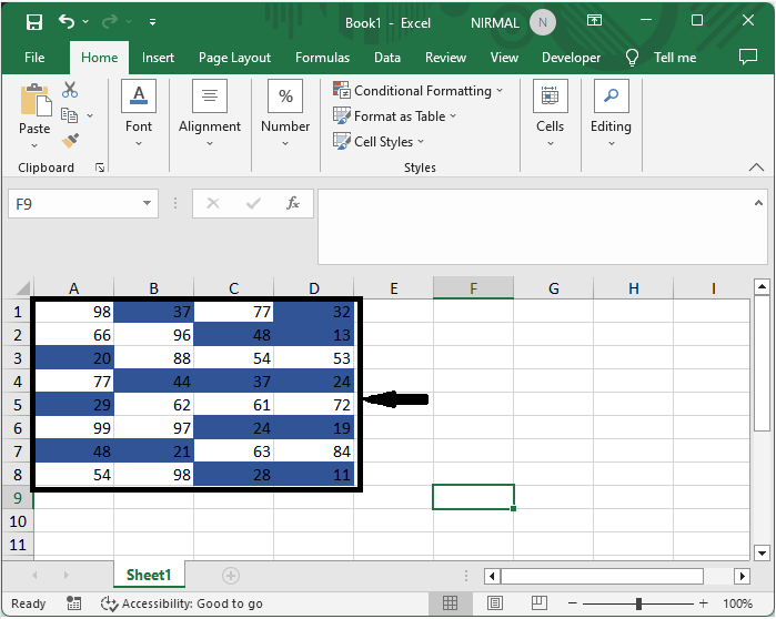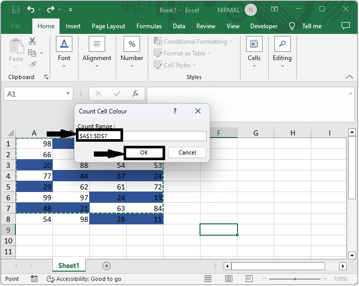 现在单击 F5 运行模块,选择单元格范围,然后单击“确定”。