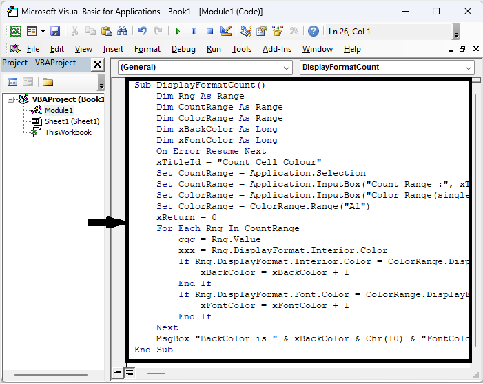 在这里,我们将首先创建一个 VBA 模块,然后运行它来完成任务。因此,让我们看看一个简单的过程,了解如何使用 Excel 中的条件格式根据颜色计数或求和单元格。