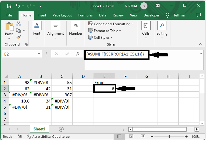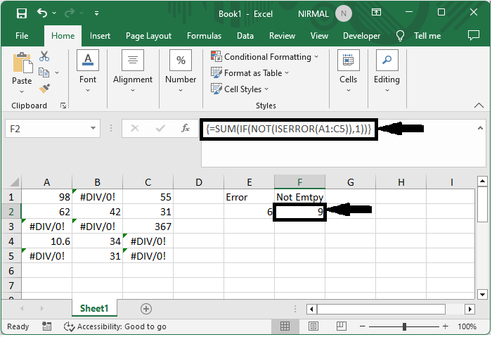 这就是如何在Excel中计算错误单元格或非错误单元格的数量。