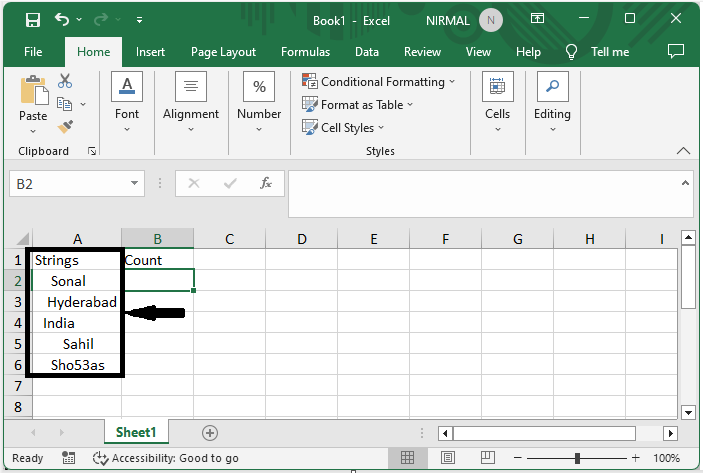 假设您有一个 Excel 表格,其中包含带空格的字符串列表,类似于下图。