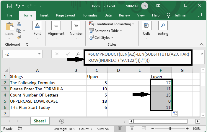 这就是如何在 Excel 中计算单元格中大写和小写字母的数量。