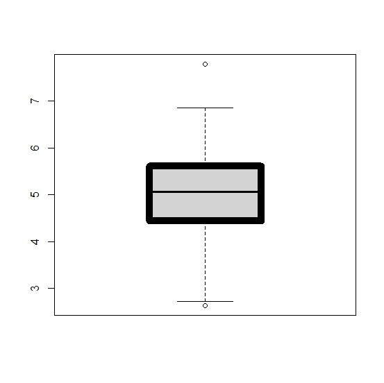 y<-rnorm(100,5,1) boxplot(y,boxlwd=10)