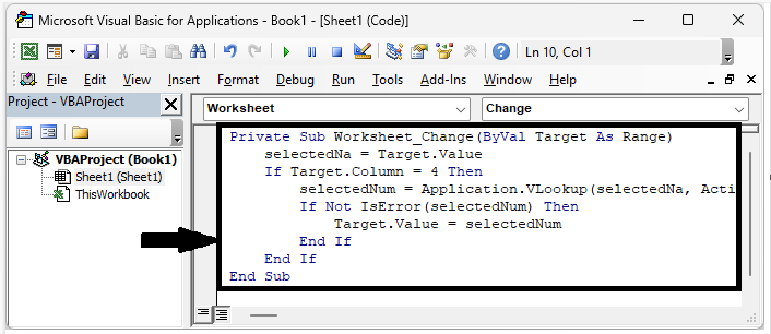 现在右键单击工作表名称并选择查看代码以打开 VBA 应用程序,然后将下面提到的代码复制到文本框中,如下面的图像所示。