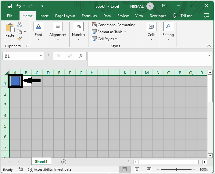 在这里,我们将首先创建一个网格纸并将其另存为模板以完成任务。因此,让我们看看一个简单的过程,了解如何在 Excel 中创建网格纸或方形模板。