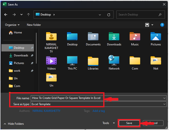 然后为文件命名,将“保存类型”设置为“Excel 模板”,然后单击“保存”以完成任务。