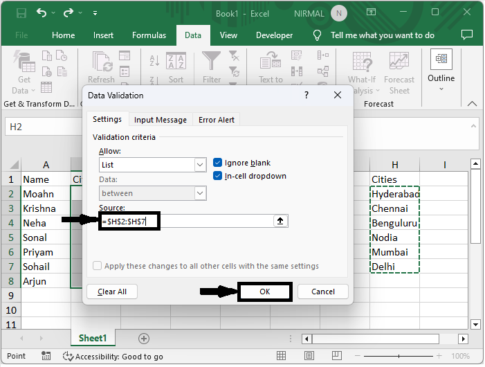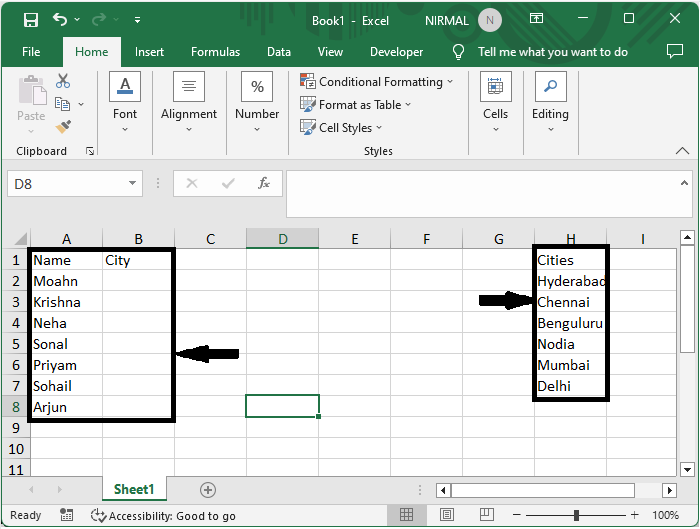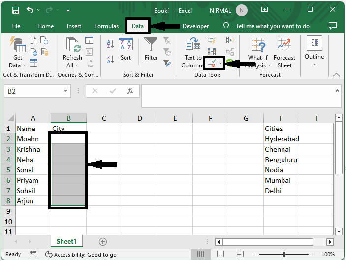在这里,我们将首先选择单元格范围并创建一个下拉列表以完成任务。因此,让我们来看一个简单的过程,了解如何在 Excel 单元格中创建或插入下拉列表。
