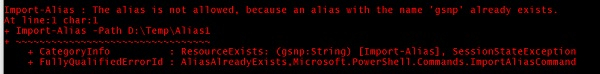 接下来,无论何时运行新的PowerShell控制台,您都找不到新的别名,因此您需要导入导出的别名。