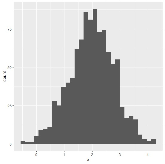 set.seed(151) x<-rnorm(1000,2,0.80) df<-data.frame(x)