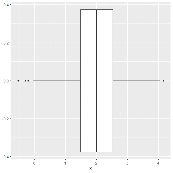 library(gridExtra) p1<-ggplot(df,aes(x))+geom_histogram(bins=30) p2<-ggplot(df,aes(x))+geom_boxplot() grid.arrange(p1,p2)
