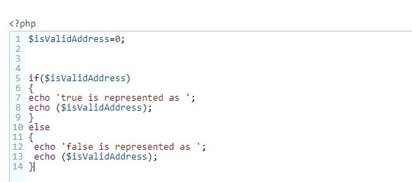 查看下面的PHP代码。在这里,我已经设置了变量“isValidAddress”。值为1,这意味着它将if条件评估为true,并且只执行if语句的主体。检查下面的代码: