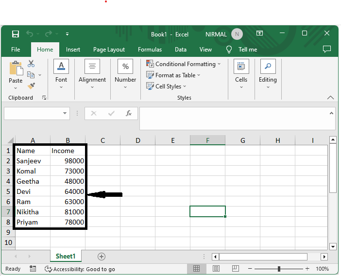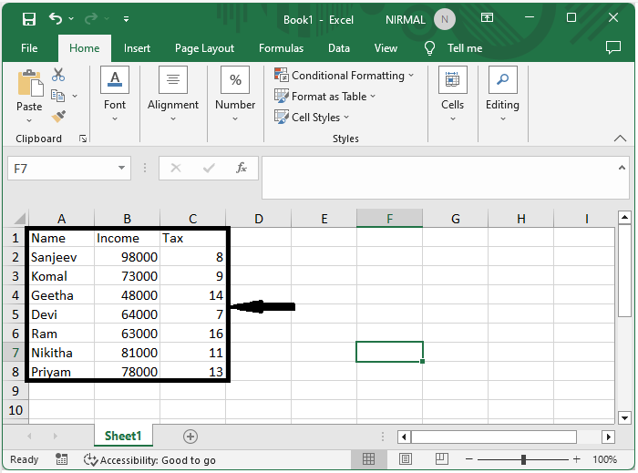 考虑一个 Excel 表格,其中您以表格格式存储数据,类似于下图。