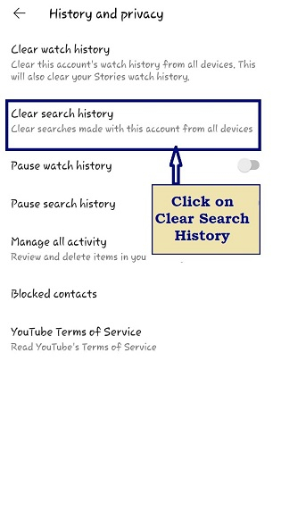 - 在下一个屏幕上,选择“清除搜索历史记录”。