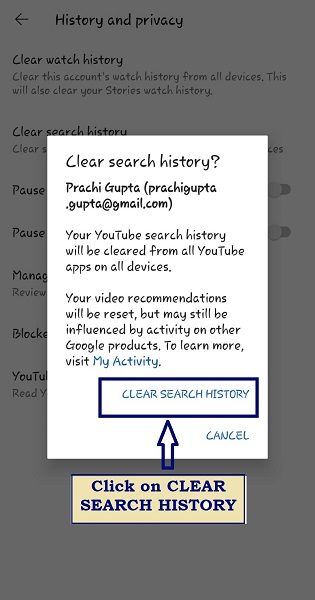 - 将弹出一个弹出窗口,询问您是否确定要清除搜索历史记录。选择“清除搜索历史记录”以清除它。