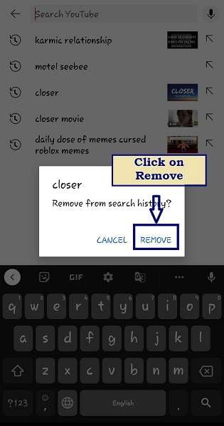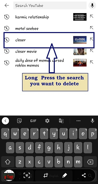 按照以下步骤逐步清除使用 YouTube 应用的 YouTube 单个搜索历史记录。