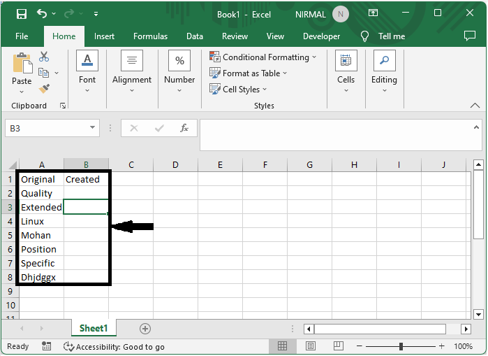 然后使用自动填充柄从第一个值向下拖动以完成任务。最终结果将类似于下图。