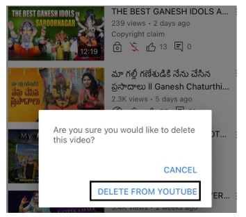 步骤 7 - 将显示一个弹出窗口,询问您是否确定要永久从您的 YouTube 频道删除视频。点击“从 YouTube 删除”,视频将永久从您的 YouTube 频道删除。